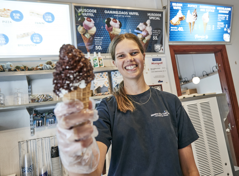Verschillende plaatsen bieden een prachtig uitzicht over het fjord en liggen toch dicht bij de faciliteiten. Er zijn drie goede tentgebieden die aan zeer uiteenlopende wensen voldoen. Om beschutte plekken te creëren is het terrein opgedeeld met kleine hagen en grote groepen bomen en struiken. We hebben momenteel 240 plaatsen en 25 verschillende hutten en stacaravans.