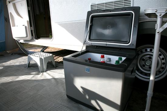Udstyr · Er zijn veel kleine koelboxen die je kunt meenemen als extra op de camping als de capaciteit van de koelkast in de caravan niet voldoende is. Wij hebben een koel-/vriesbox van het compressortype van Waeeco getest, waarmee de box zowel als koelkast en als vriezer gebruikt kan worden.