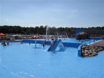 Het zwembadgebied is prachtig aangelegd met een ondiep en een diep bassin, een grot met bubbels, een glijbaan en veel ligstoelen. Er is de mogelijkheid om een ijsje te kopen, enz., en het is gratis voor de gasten van de camping om het zwembadgebied te gebruiken. Het zwembad is altijd verwarmd tot een temperatuur van 22-23 graden. Op warme dagen kan de temperatuur oplopen tot 26-27 graden.