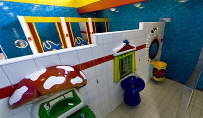 Aabo Camping strekt zich uit over een groot terrein. Er zijn meerdere toiletgebouwen en ze zijn allemaal groot en aantrekkelijk. Je merkt dat "het hier aangenaam moet zijn". De doucheruimtes zijn goed ingericht, en vooral de kinderbadkamer is een groot succes. Hier is ruimte voor kinderen van alle leeftijden, en waar het normaal gesproken vervelend kan zijn als kind om het vuil van de dag af te wassen, is het hier een spel.