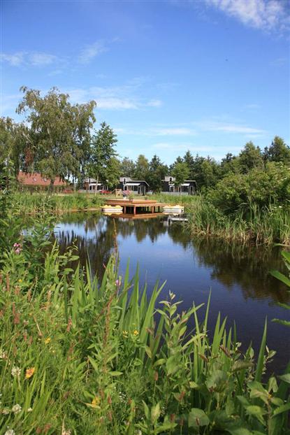 De hutten zijn gelegen in het achterste deel van de camping met een groot zuidelijk terras en uitzicht op de omheinde vijver van de camping.