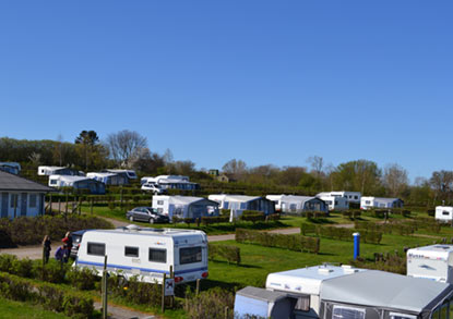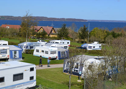 De camping is verdeeld in 4 gebieden, elk met een slagboom, wat het verkeer en lawaai vermindert. Binnen de verschillende gebieden is de camping opnieuw verdeeld in plateaus vanwege de helling, zodat vrijwel alle plekken kunnen genieten van het uitzicht op Båring Vig en Juelsminde enzovoort.