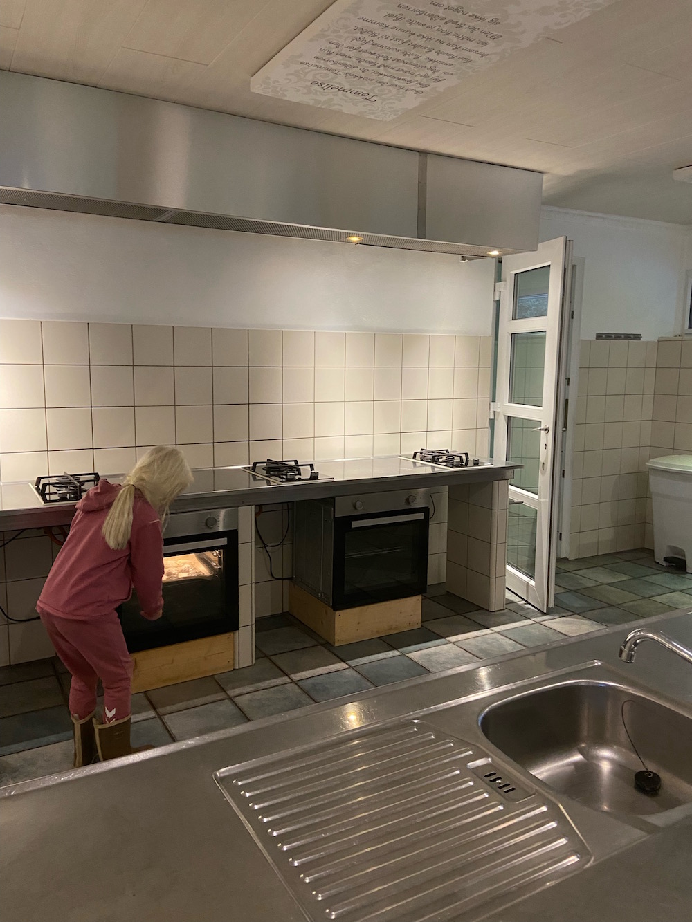 We wilden de gemeenschappelijke faciliteiten testen en hadden broodjesdeeg meegenomen, dat alleen wat gist en water nodig heeft. We gingen naar het servicegebouw met onze broodjes en voilà, er waren ook vroeg in de ochtend versgebakken broodjes.