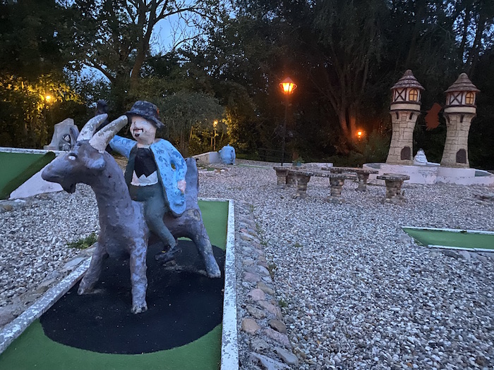 Het enorme buitenwaterpark was om begrijpelijke redenen gesloten in oktober. Maar het ziet er ontzettend leuk uit, en onze dochter vroeg: "Papa, waarom is het eigenlijk gesloten?".