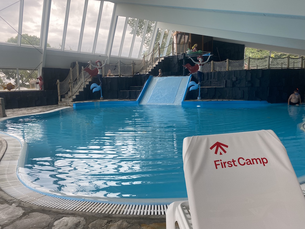Gelukkig kon ik haar troosten met een bezoek aan het tropische waterpark, dat gratis is voor gasten van de camping. Maar ze was dus klaar voor een zwemsessie ondanks de temperatuur van 10 graden ;)