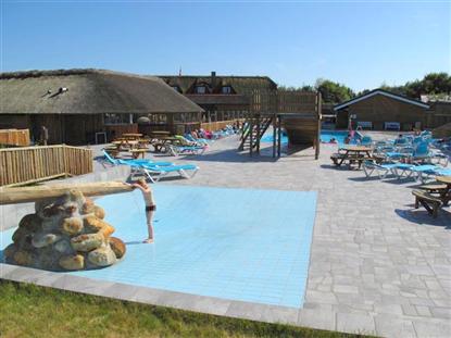 Het unieke aan Hanstholm Camping is zonder twijfel het zwembad. Op het eerste gezicht lijkt het misschien op elk ander zwembadgebied ? er is een mooi groot zwembad met glijbaan voor de kleinere kinderen. Er is een klein kinderbad. En hoewel de 35 meter hoge surfing hill met 4 banen de grootste is op een Deense camping, zorgt de meer dan 300 m² grote zonnecollector naast het zwembad ervoor dat de temperatuur in het grote bassin zelden onder de 28° komt gedurende de hele zomer, en het kinderbad is goed boven de 30°. Een groot pluspunt is dat je zelfs op een bewolkte dag met je kinderen in het zwembad kunt ontspannen, zonder ze met blauwe lippen eruit te hoeven halen na zelfs een kort verblijf. Bovendien zijn er volop ligstoelen en toegang tot zowel de poolbar als het café.