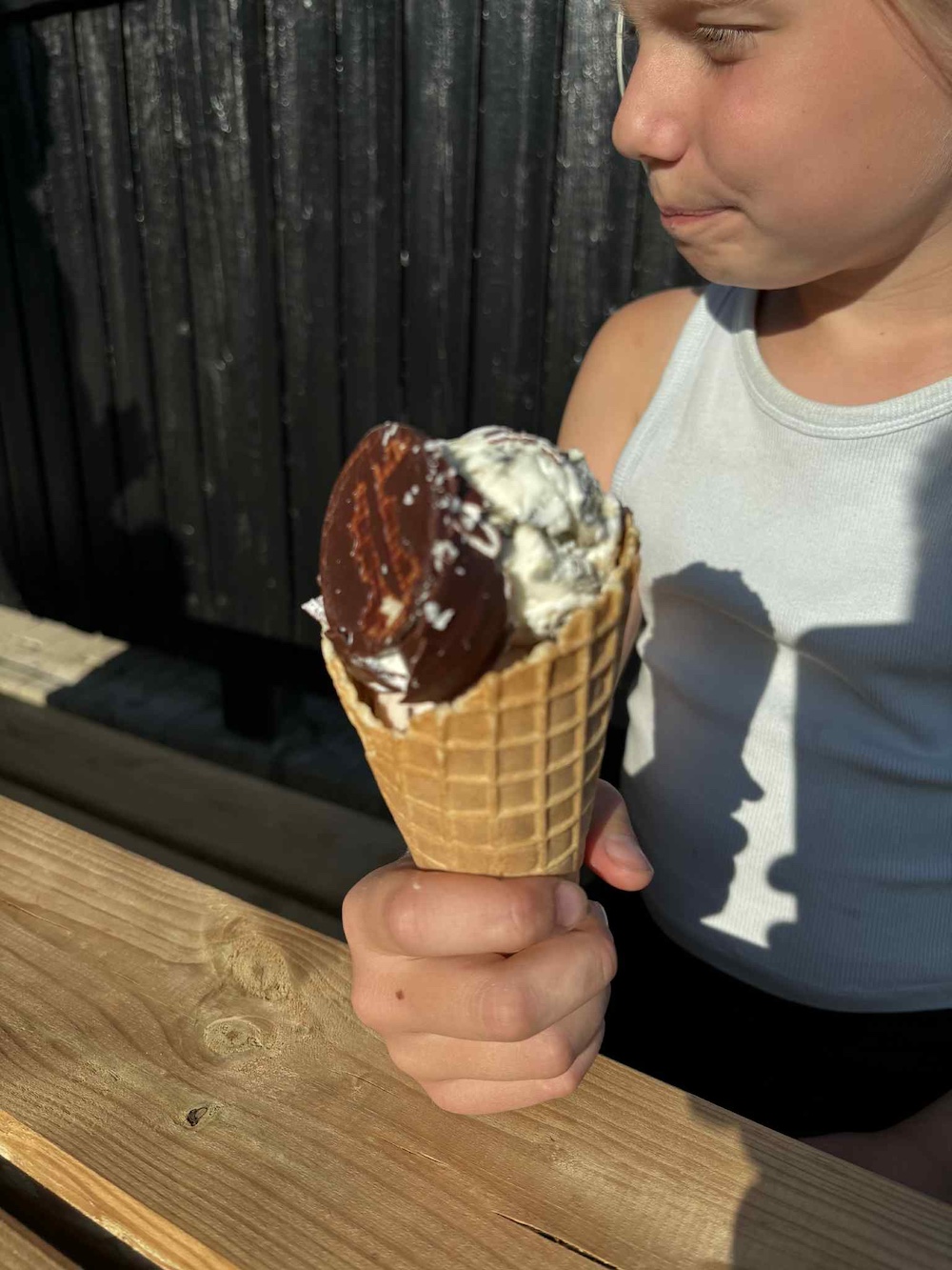 Natuurlijk hebben we ook de ijsjes getest. Hier stond Klaus achter de toonbank, klaar om ouderwetse ijshoorntjes te serveren - met flødebolle, als je dat wilt.