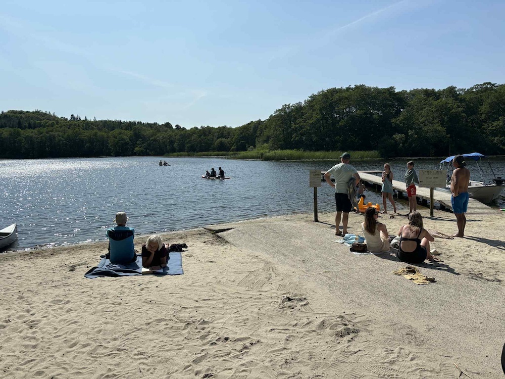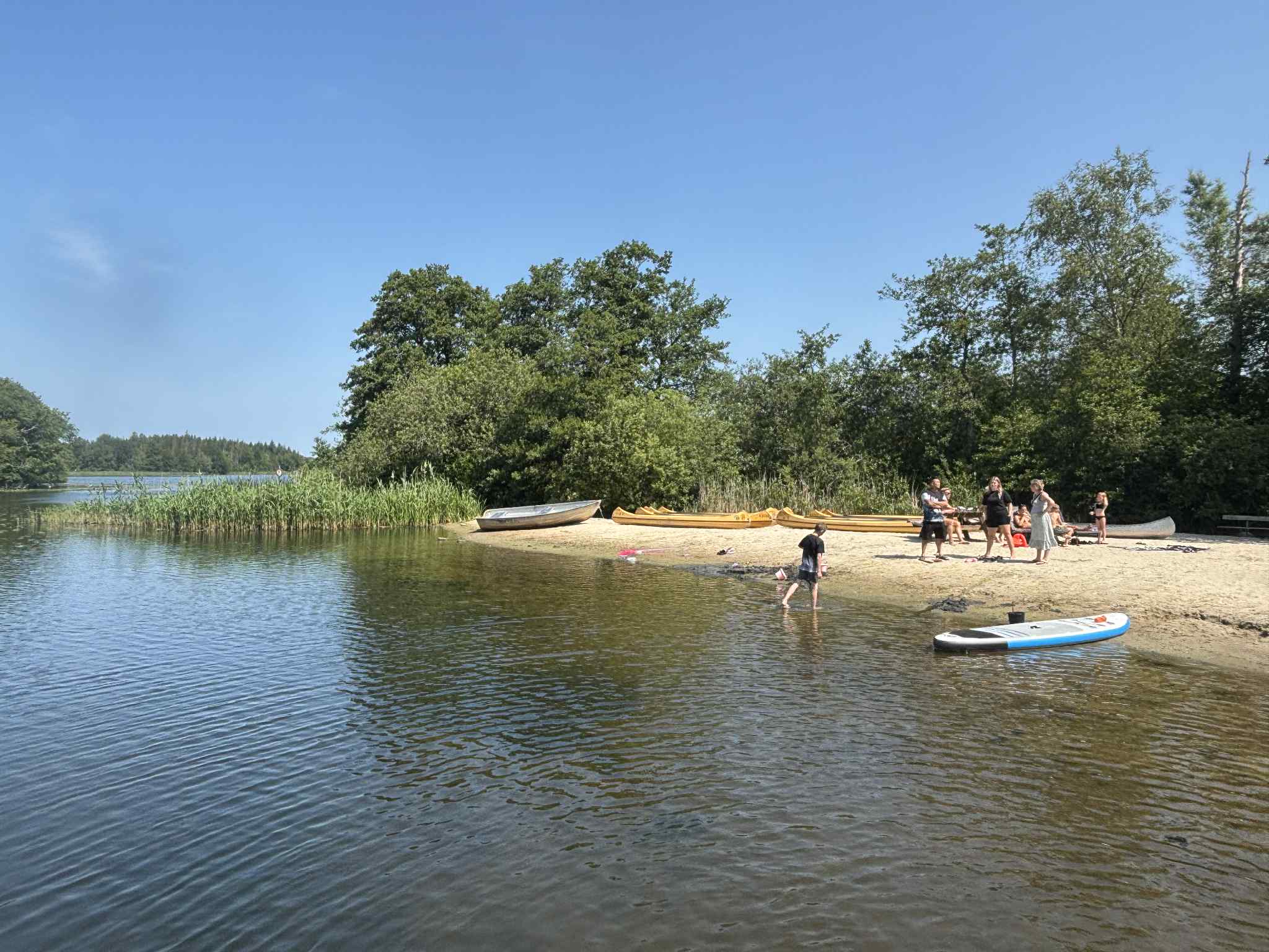 Vanaf hier is het ook de kortste weg naar het meer, waar kinderen en volwassenen urenlang kunnen spelen in het water en ontspannen op het strand.