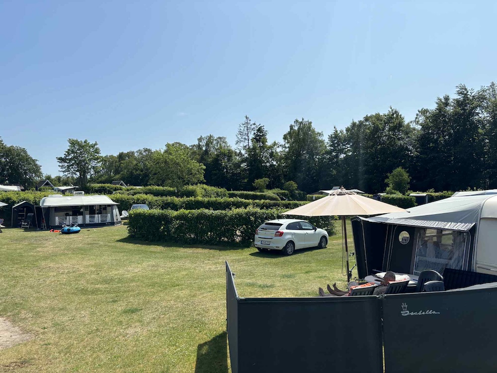 Op een warme en zonnige junidag gingen we naar Holmens Camping in Ry. Bij aankomst werden we al begroet door de campingleiders Tinne en Klaus, die ons met een grote glimlach verwelkomden en ons naar onze plek begeleidden.