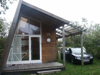 De hutten liggen slechts "een steenworp" van elkaar, maar zijn zo slim geplaatst dat het niet stoort. Echter, er is niet bij elke hut ruimte om de auto te parkeren.