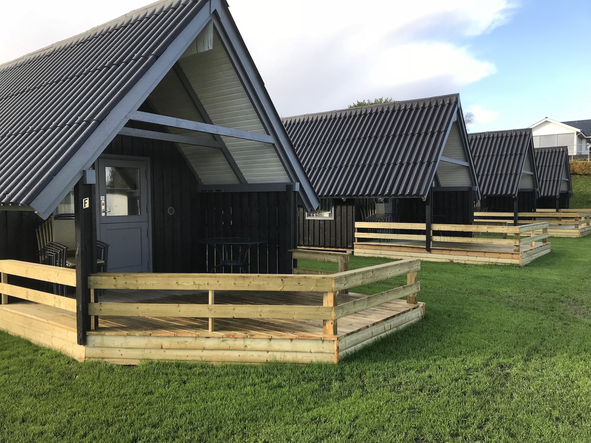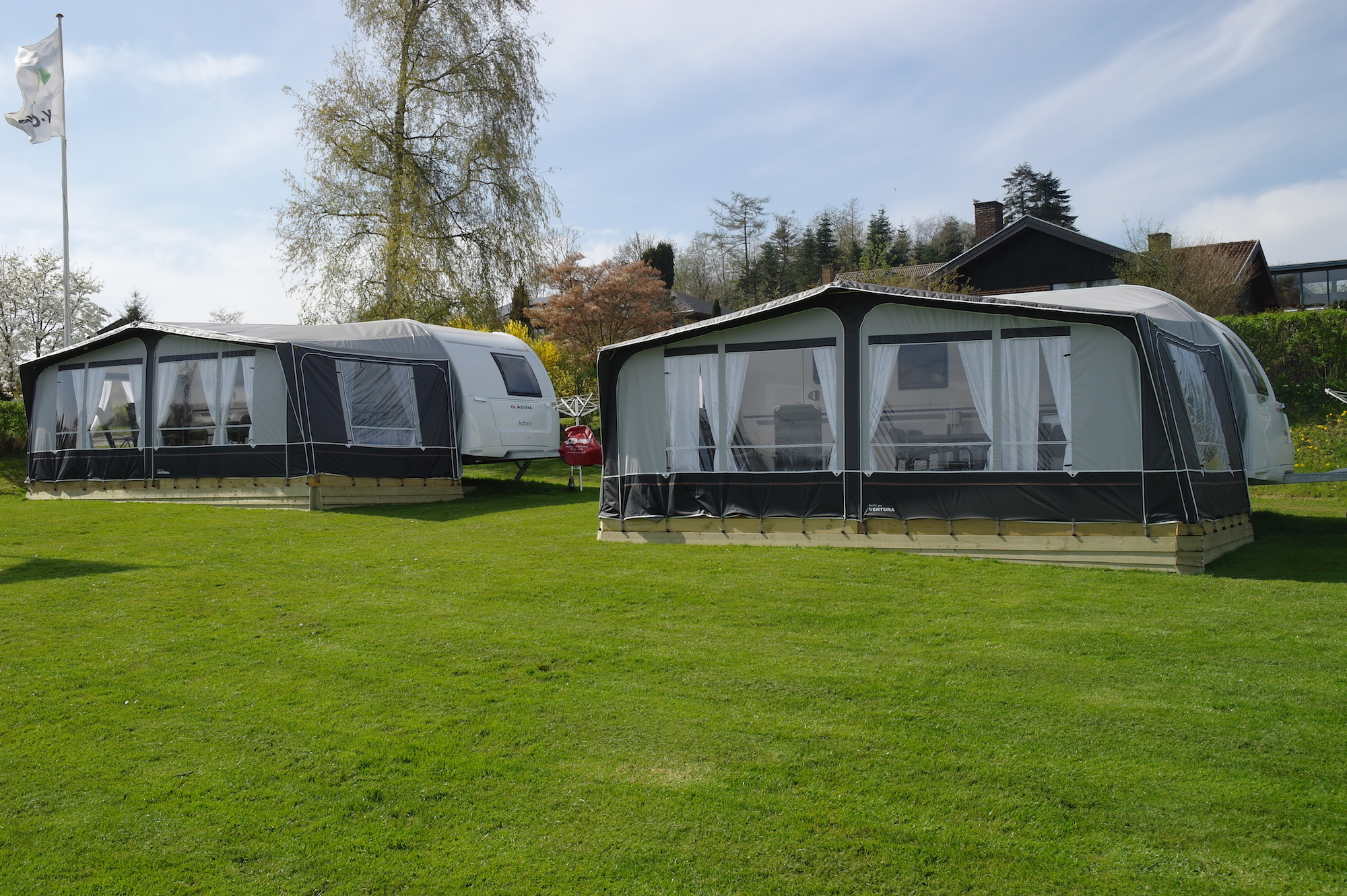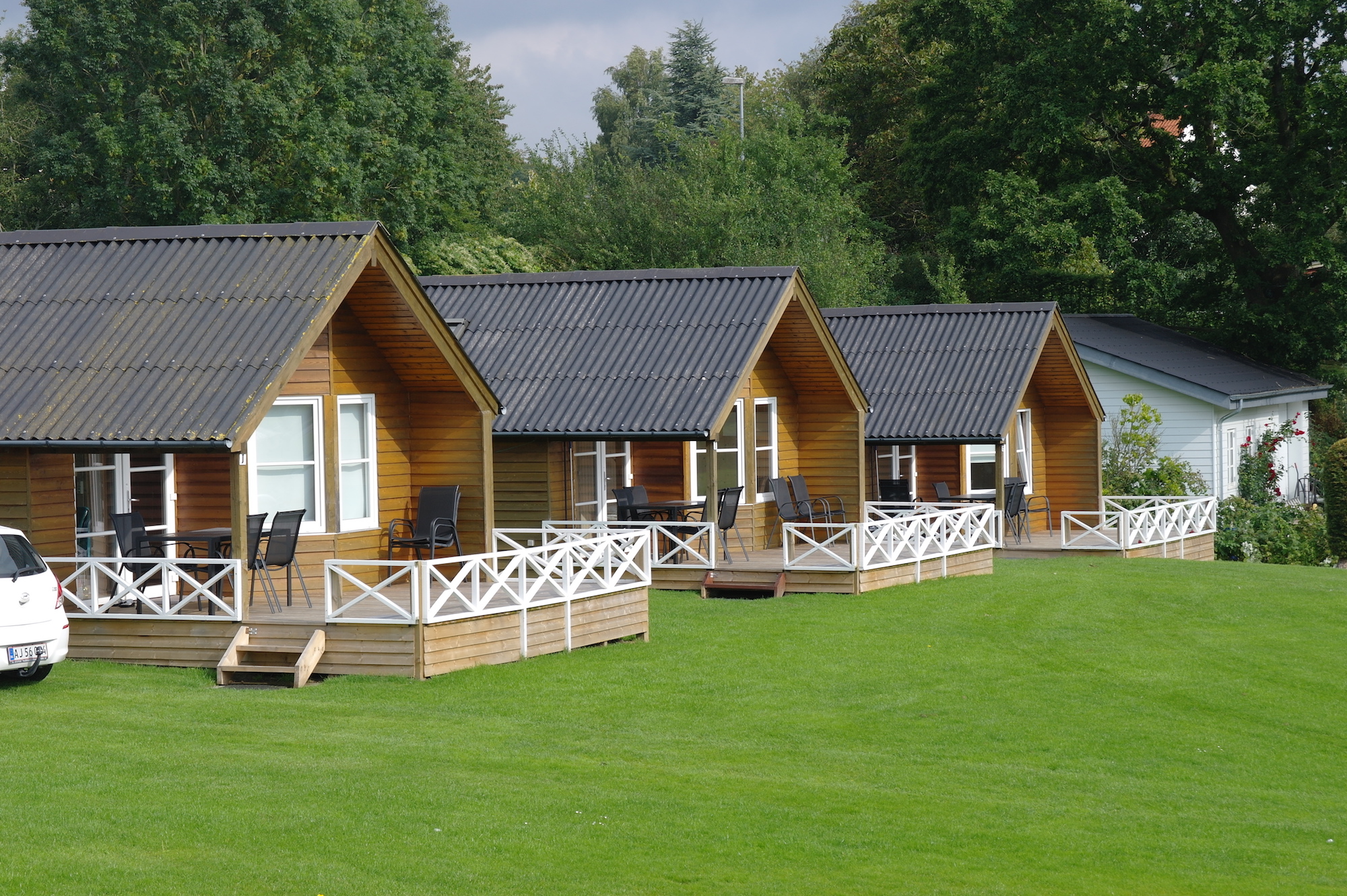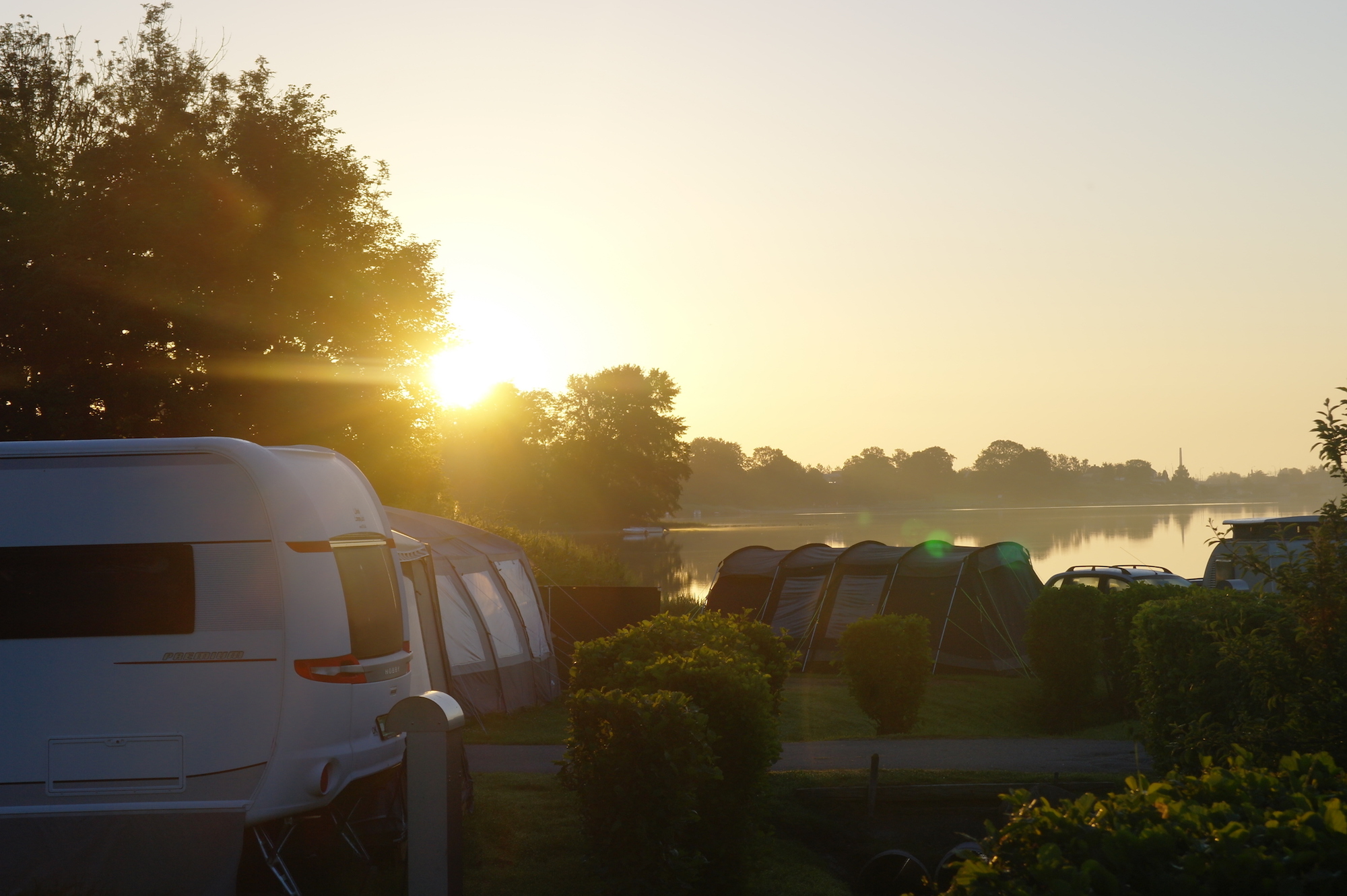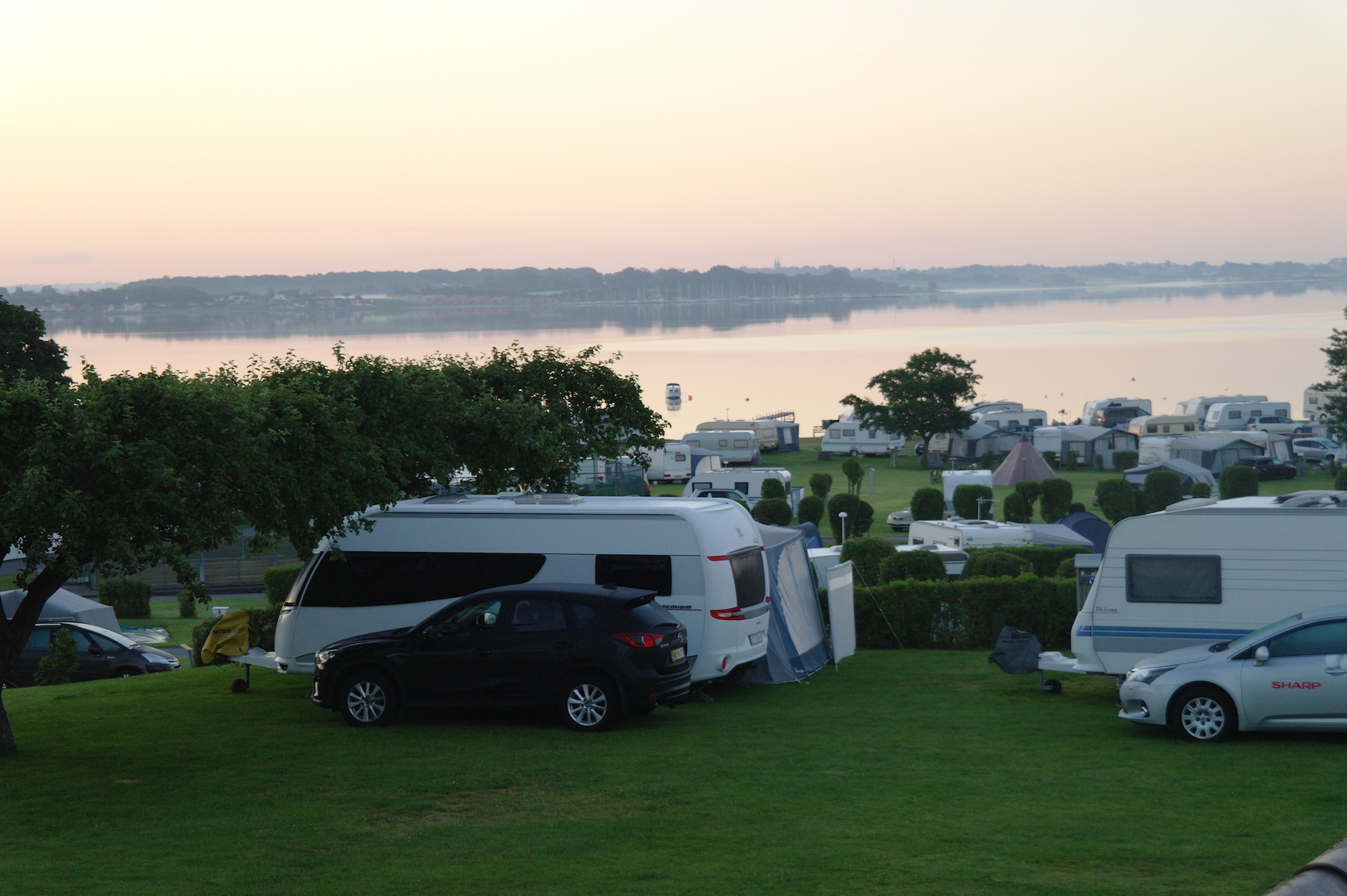 En als we zeggen aan de voet van - dan menen we dat. Je kunt je rijdende vakantiehuis letterlijk zo plaatsen dat je je voeten in het natte element steekt zodra je de deur van de caravan opent, en dat is een zeldzaamheid op een Deense camping.