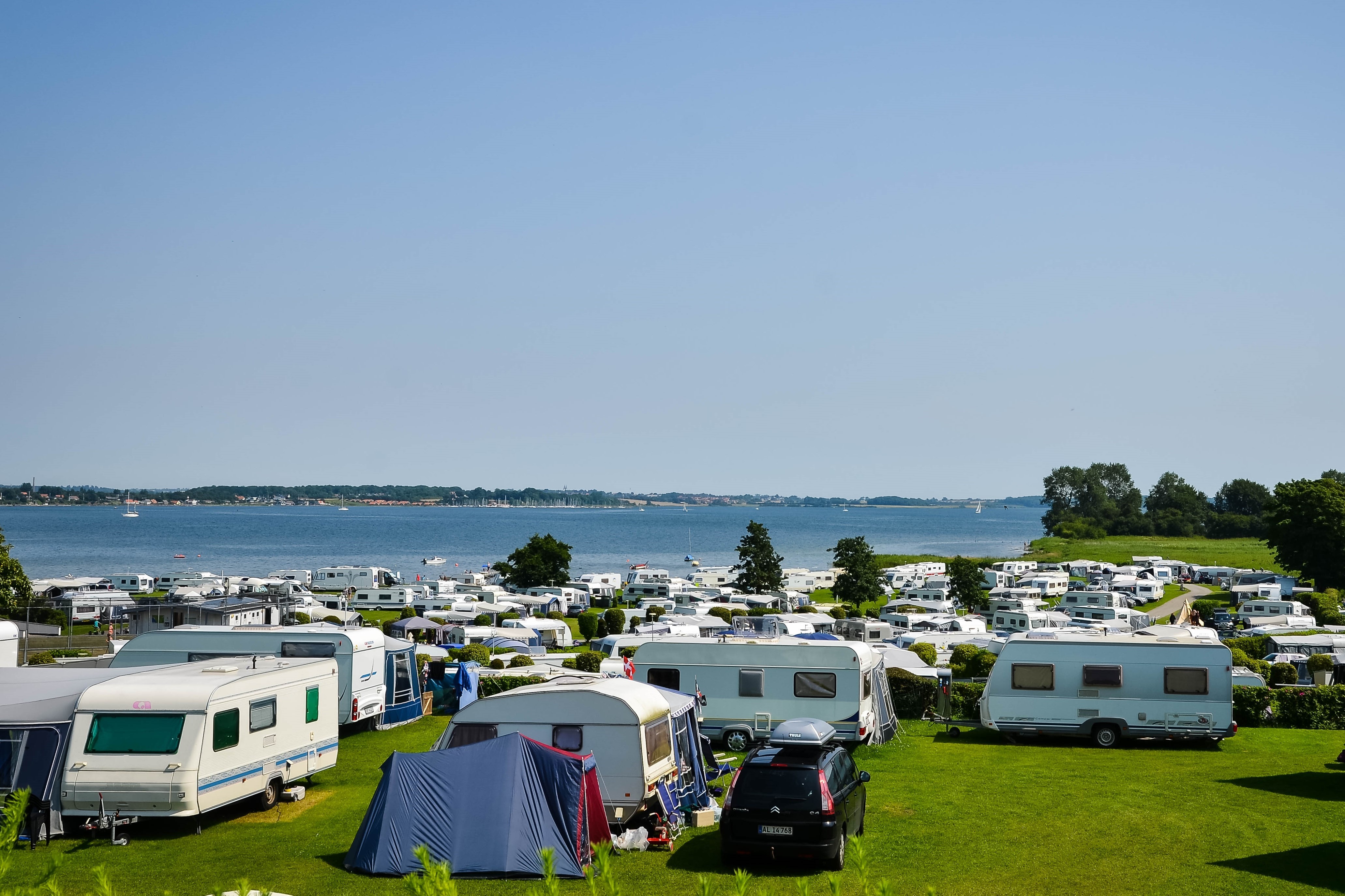 Zet de caravan op slechts een paar meter van de waterkant. Dat kan bij Lærkelunden Camping bij Gråsten - een plek met licht, lucht, water en prachtige faciliteiten.