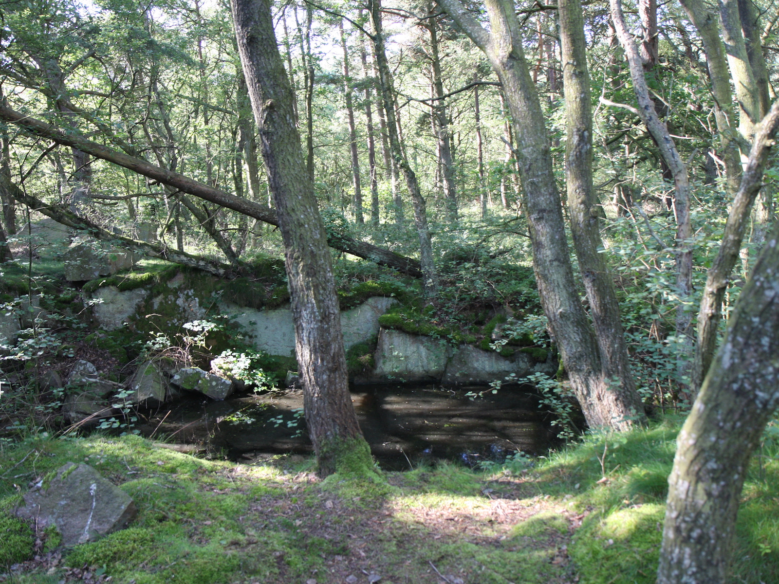 De hele camping is omringd door een verlaten granietgroeve, die zich op natuurlijke wijze heeft ontwikkeld tot een prachtig bos met vele kleine vijvers.