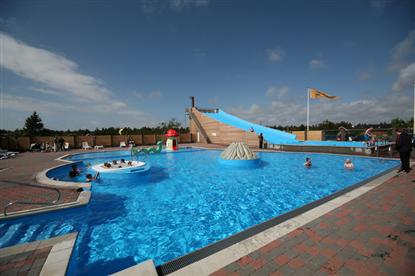 Ook al is het grijs weer, kan het toch aangenaam zijn. Daarom heeft de camping ervoor gekozen om het zwembad op te warmen tot ongeveer 25 graden - ongeacht het weer buiten. Ondanks de kosten voor het onderhoud van zo'n groot waterpark, heeft het beheerdersechtpaar ervoor gekozen om het bezoek aan het waterpark gratis te maken voor kampeerders die op de camping overnachten - naar onze mening een mooie geste als je denkt aan de huidige olieprijzen voor verwarming.