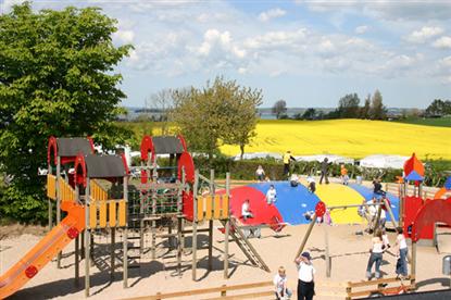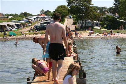 Maar ook op de camping kun je de activiteiten op het water volgen - vanaf vrijwel alle percelen heb je uitzicht op "een klein stukje water" aan de horizon. Het is dan ook niet meer dan 2 minuten lopen voordat je op het heerlijke zandstrand staat, waar de waterglijbaan als een magneet op de grotere kinderen werkt.