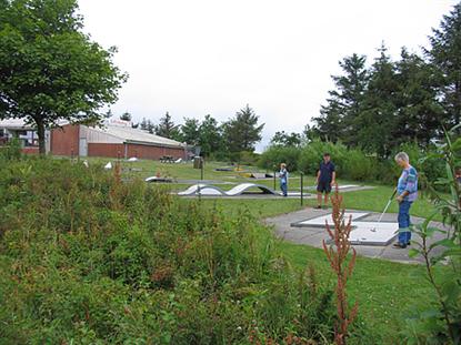 Voor een Deense camping is deze goed uitgerust. Er is een eigen 9-holes golfbaan die vrij toegankelijk is, direct aan de overkant van de weg die je naar de camping, de nabijgelegen jachthaven of het palmenstrand brengt. Ja - je leest het goed - een echt palmenstrand met wit zand en 3-4 meter hoge palmbomen.