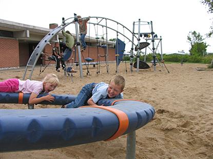 Bij elk van de twee servicegebouwen zijn er een paar goede speeltuinen met klimrekken, schommels, wipwappen enzovoort. Bij het hoofdgebouw van de camping, met informatie, supermarkt, café, tv-kamer enzovoort, liggen de sportvelden en de grote springkussens.