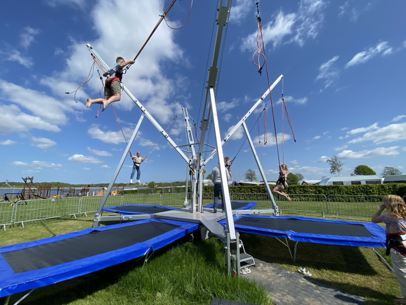 De camping beschikt over een prachtig verwarmd waterpark, 2 speeltuinen met grote springkussens, een ruime dierenweide met geiten en een paard, 18 mooncars die vrij te gebruiken zijn en nog veel meer...