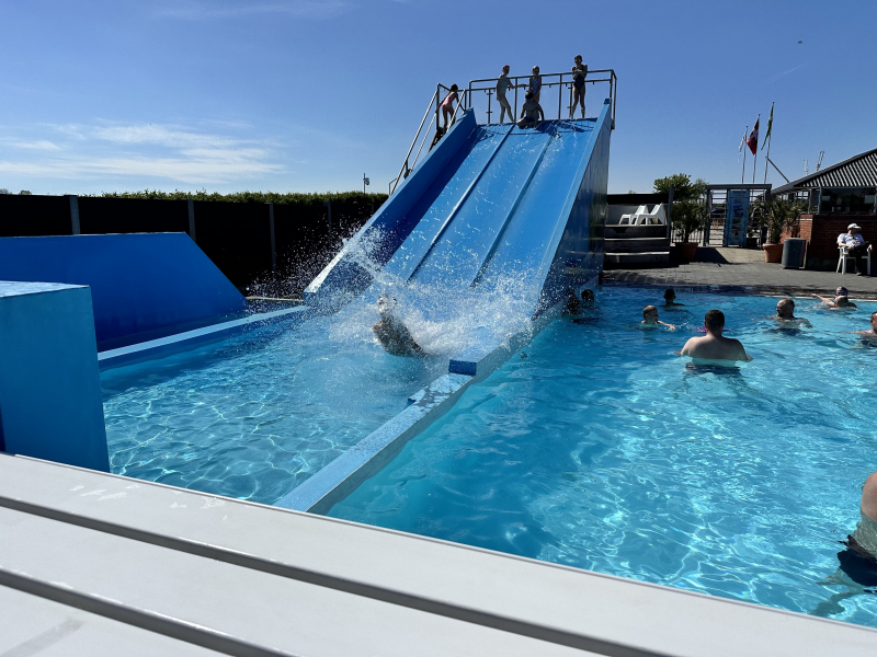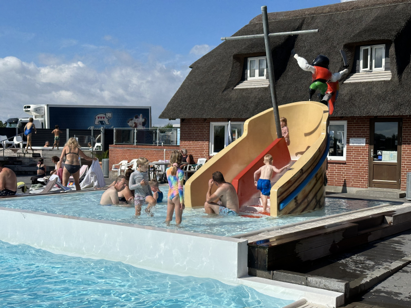 Mooie nieuwe glijbaan voor onze jongste waterratjes. De glijbaan heeft een piratenthema en nodigt uit tot volop speelplezier.