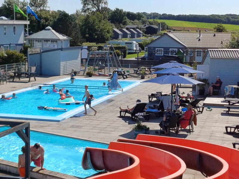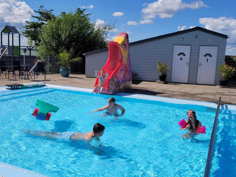 • Heerlijk nieuw verwarmd buitenzwembad met 2 gedeeltes en twee 18 meter lange glijbanen