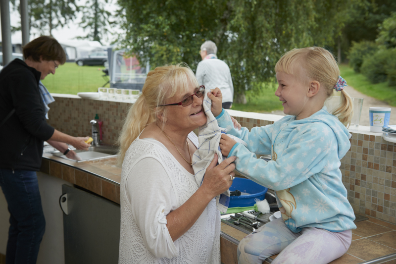 Midden op ons schiereiland vind je, naast de speeltuinen en het zwembad met glijbanen en kinderbad, ook het hoofdgebouw met kiosk, snackbar, keukens, verblijfsruimtes en moderne sanitaire voorzieningen met familiebadkamers en een speciale kinderafdeling, die vooral bij de kleintjes erg in de smaak valt.