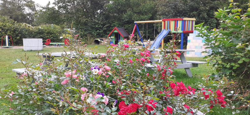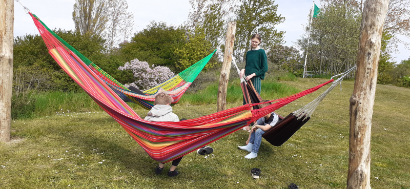 We zijn trots op de natuur om ons heen, met op korte loopafstand het water, het uitzicht over het fjord vanaf de Sidinge-dijk en op slechts een klein stukje rijden het Kongsøre-bos, waar ook een strand is. Op het terrein besteden we veel aandacht aan de beplanting: we voegen steeds nieuwe planten toe wanneer er bomen worden gekapt, en zorgen voor kleur met bloembollen en gezellige perkjes.