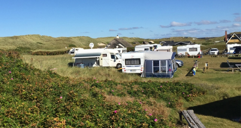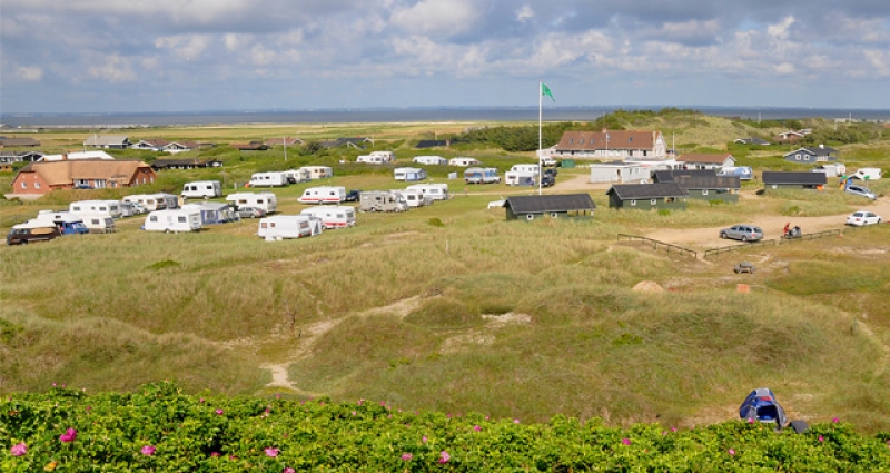Bij ons beleef je een authentieke natuurervaring, waar je altijd het ruizen van de Noordzee hoort en voelt. De camping ligt midden in het beschermde duingebied, precies tussen het Ringkøbing Fjord aan de ene kant en de Noordzee aan de andere kant.