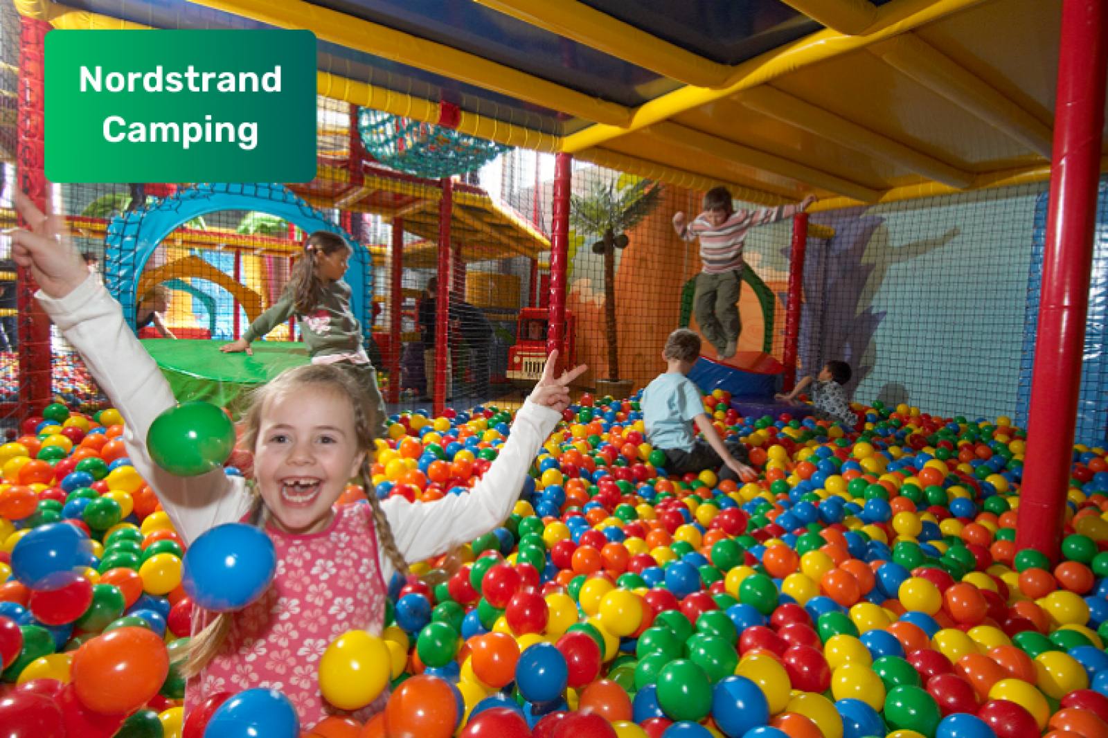 Hier is het één groot feest, en de kinderen kunnen zich uitleven in het enorme klimparadijs van 3 verdiepingen of van de 14 meter lange glijbaan suizen.