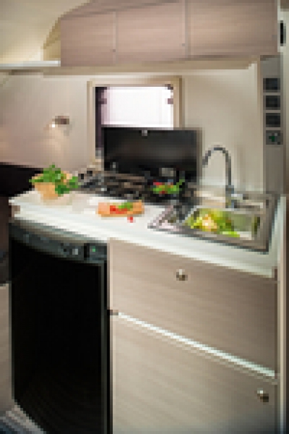 10. State of the art keuken en badkamer. De Action is uitgerust met Adria’s nieuwste innovaties: de ruimtebesparende en geniale ERGO-badkamer en de nieuwe SMART-keuken die het werkblad in de keuken optimaliseert.