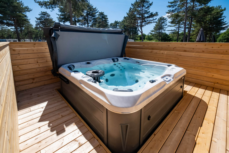 - Privé loungegedeelte met eigen spa en buitenmeubels: Ontspan en geniet van de luxe van je eigen privé spa en buitenruimte.