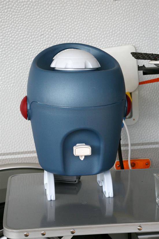 De thermo-waterkan is verkrijgbaar bij de meeste caravanhandelaren en kost vanaf net geen 200 kr. voor het 3-liter model. Het 6-liter model dat wij kochten kostte ongeveer 220 kr. – naar onze mening geld dat heel goed besteed is.