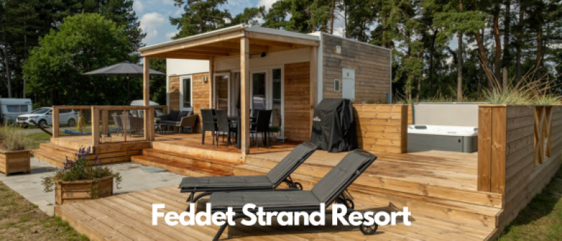 Feddet Strand Resort presenteert de grootste kampeerplaatsen van Denemarken voor uw eigen caravan, tent of camper, met privékeuken, badkamer en spa.